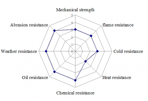 Abrasion resistance, water resistance, acid and alkali resistance, oil resistance, aging resistance, weather resistance, ozone resistance, high elasticity, high hardness also have full flexibility and elongation, but hot resistance was inferior.