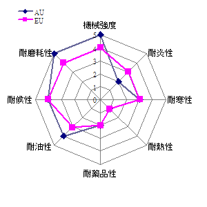 2. 注模型的物性最好,在高硬度:EU>AU;低硬度:AU>EU。
